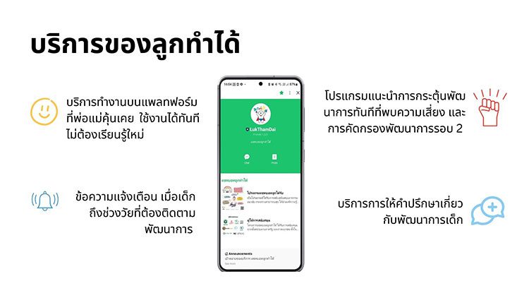 ‘ลูกทำได้’ แชตบอทคัดกรองและส่งเสริมพัฒนาการเด็ก หนึ่งในกิจการเพื่อสังคมจากโครงการพลังเปลี่ยนแปลงเพื่อสังคม หรือ Banpu Champions for Change (BC4C) โดย บริษัท บ้านปู จำกัด (มหาชน) และสถาบัน ChangeFusion ประสบความสำเร็จในการถ่ายทอดความรู้แก่พ่อแม่มือใหม่ให้สามารถตรวจสอบพัฒนาการลูก ตลอดจนขอรับคำปรึกษาจากผู้เชี่ยวชาญด้านพัฒนาการเด็กหรือจิตแพทย์เด็ก เพื่อลดภาวะเสี่ยงพัฒนาการล่าช้า ไม่เป็นไปตามวัย โดยใช้อุปกรณ์ใกล้ตัวอย่างโทรศัพท์มือถือในการรับบริการผ่านแอปพลิเคชั่น LINE