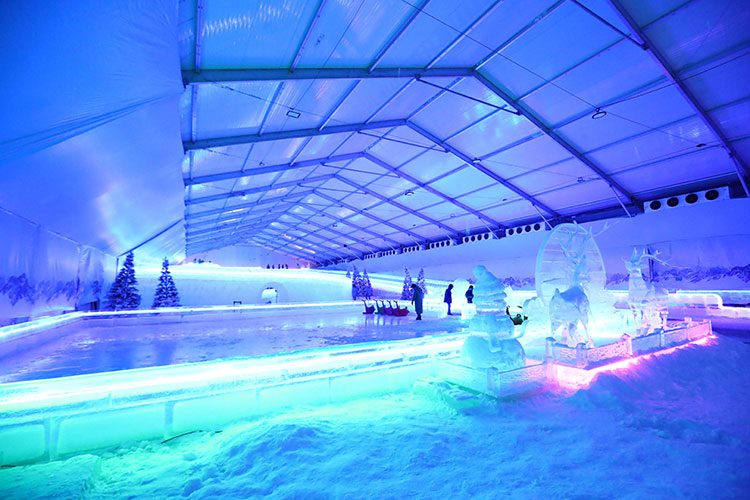 - โซนน้ำแข็ง ผู้เข้าชมจะได้พบกับลานน้ำแข็งขนาด 300 ตารางเมตร เครื่องเล่นม้าหมุน และเลนสไลเดอร์ที่ทำจากน้ำแข็งสองเลนซึ่งมีความยาวรวม 148 เมตร ซึ่งเป็นหนึ่งในสไลเดอร์น้ำแข็งในร่มที่ยาวที่สุดในโลก นอกจากนี้ ยังตกแต่งด้วยประติมากรรมน้ำแข็งที่สร้างขึ้นโดยช่างแกะสลักน้ำแข็งระดับปรมาจารย์จากเมืองฮาร์บิน ประเทศจีน ซึ่งเป็นสถานที่จัดงานเทศกาลน้ำแข็งฮาร์บินที่มีชื่อเสียงทําให้ผู้เข้าชมมีโอกาสถ่ายภาพสุดพิเศษนี้ได้ในงานเราได้